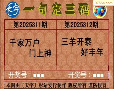 25312期天宇一句定三码3D图库