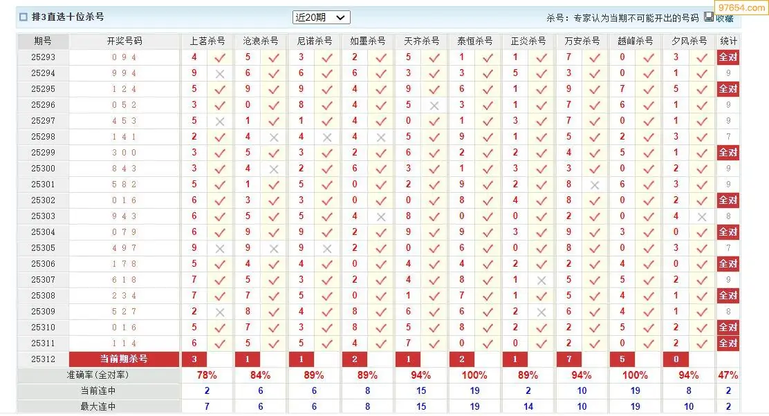 体彩p32025312期澳客彩票十大专家杀号