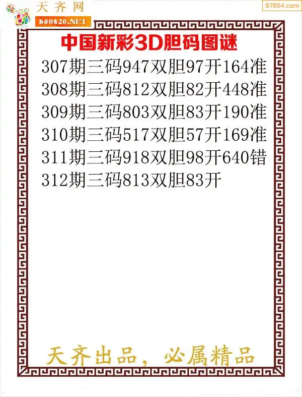 2025312期彩彩网3d原创图迷搜集(天中整理)