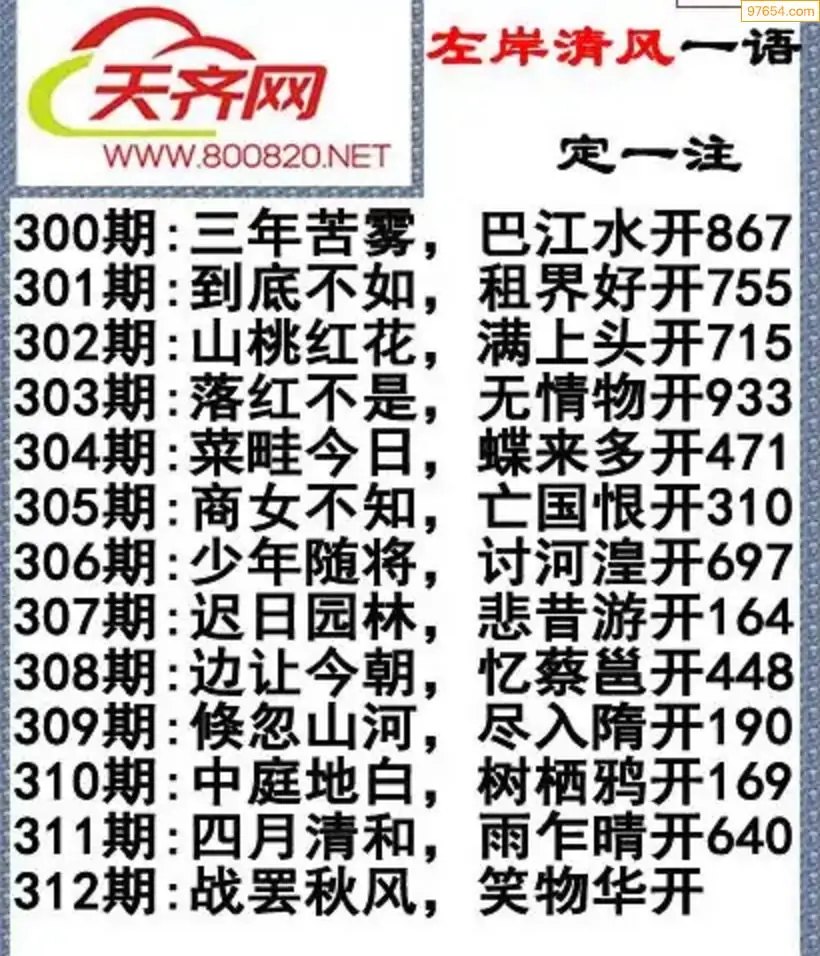 312期3D晚秋(乙种和值)谜:同福靠前 D:独木难行