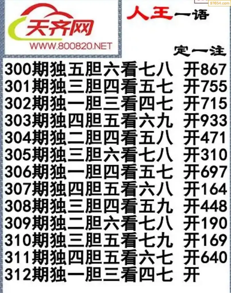 福彩3d左岸清风25年312期一语定一注