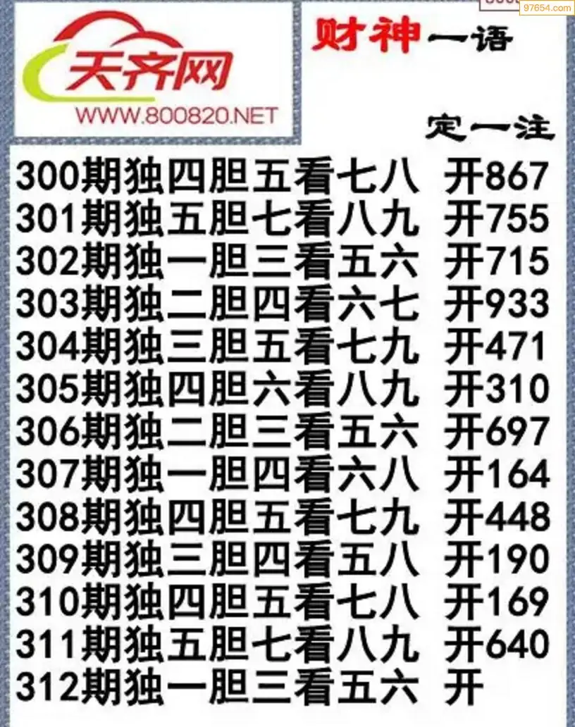 福彩3d左岸清风25年312期一语定一注