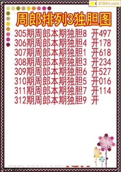25312期排列3周郎本期独胆图