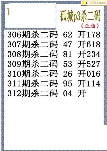 25年312期孤城本期杀码排3图谜