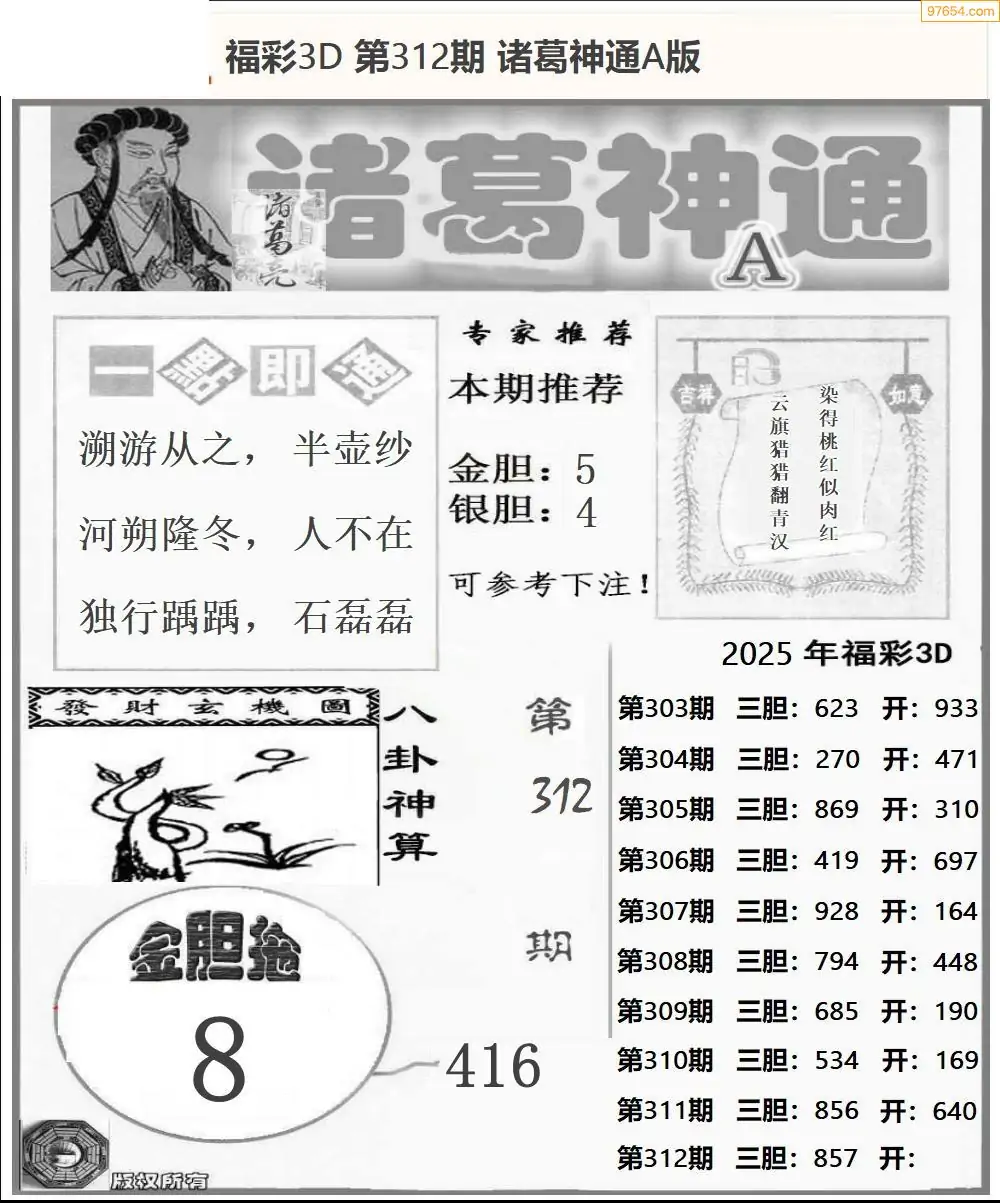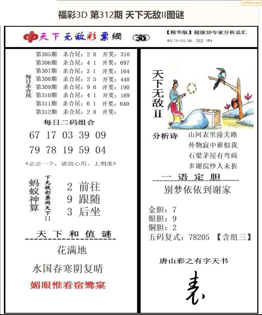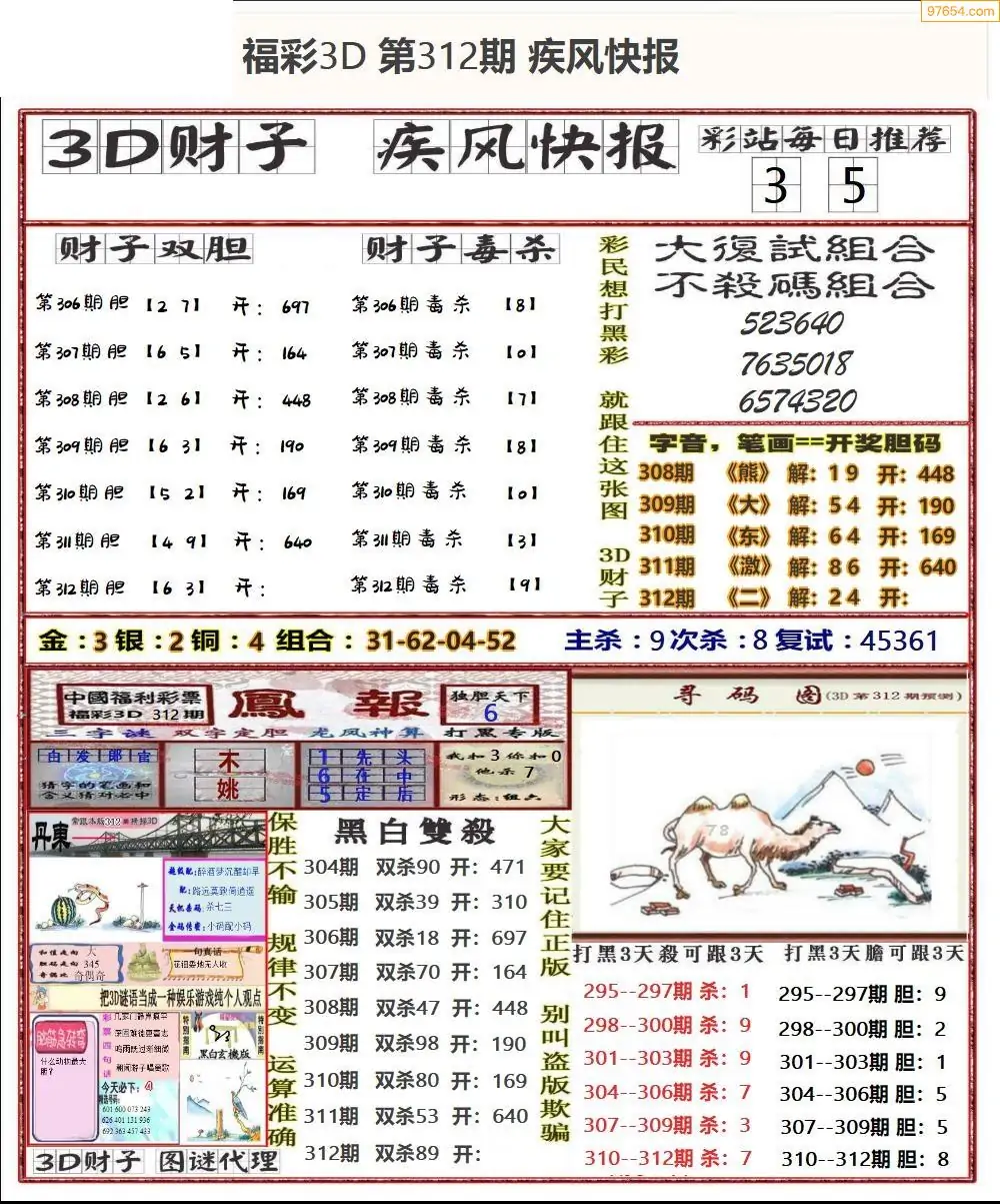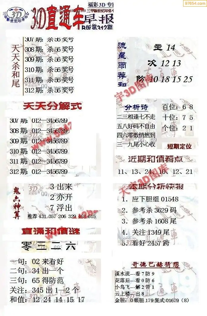 25年312期3d选号彩报图谜画谜