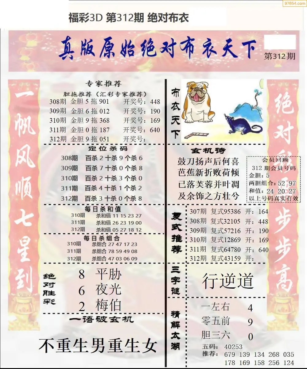 福彩3D312期天牛彩吧套图整合总汇