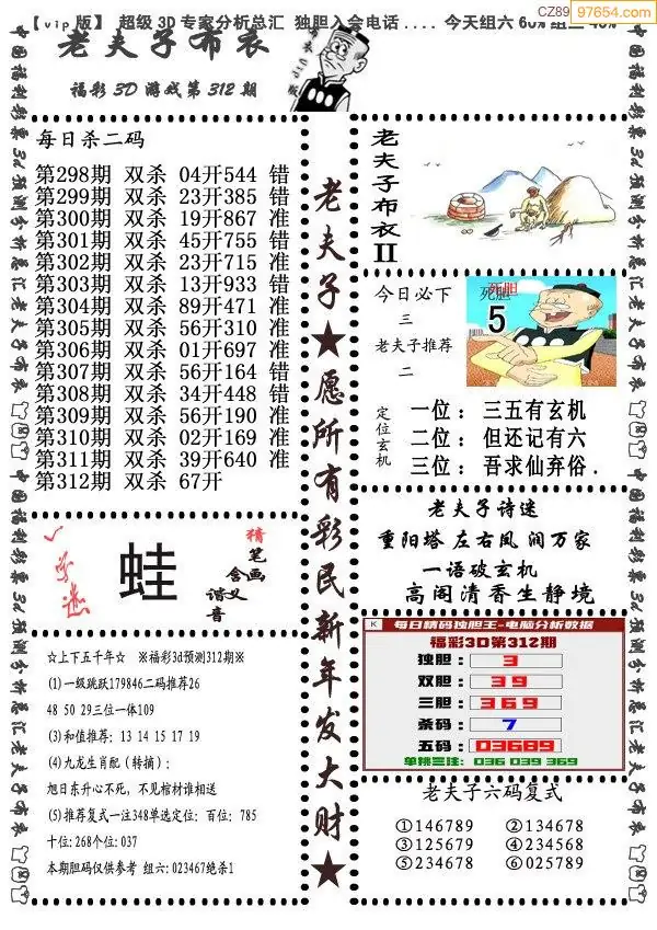 福彩312期3d真精华布衣+布衣早报(转载)