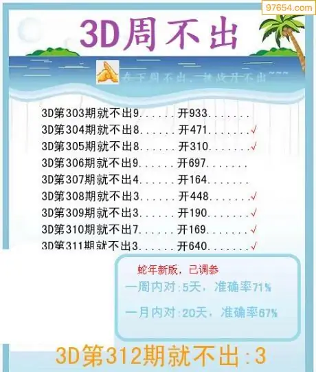 2025312期光荣榜杀码3D图迷