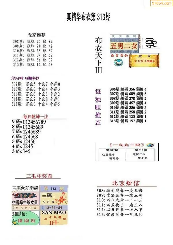 (8)25年312期今日3d各类彩报汇总