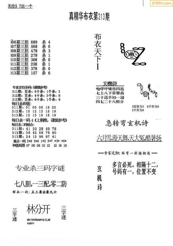 (9)25年311期当期全站杀号定胆图