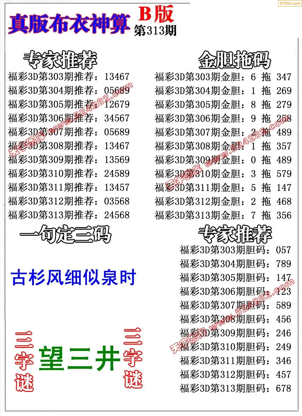 313期真版布衣神算专家推荐