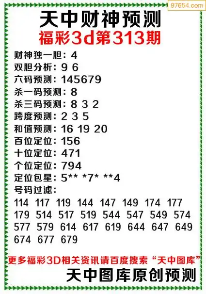 313期财神3d综合预测分析