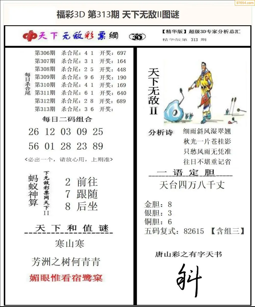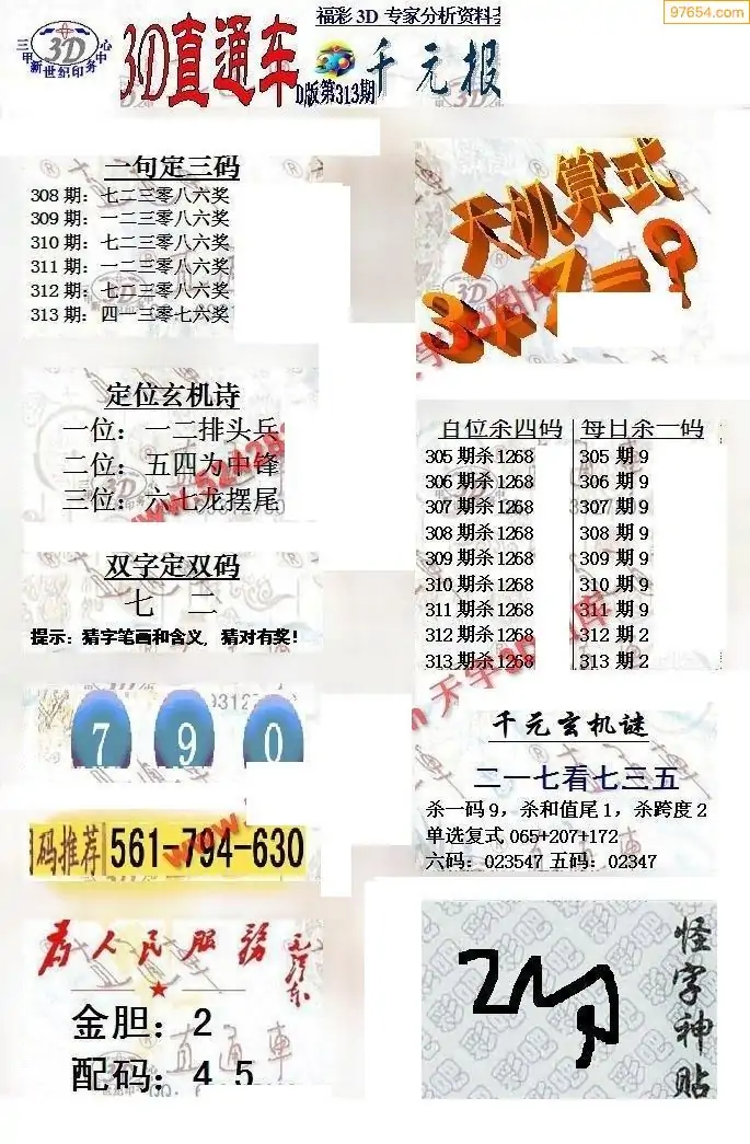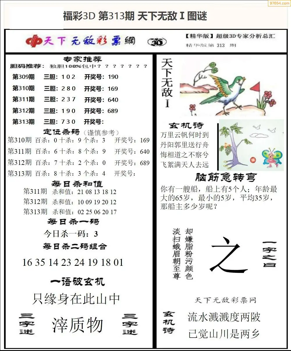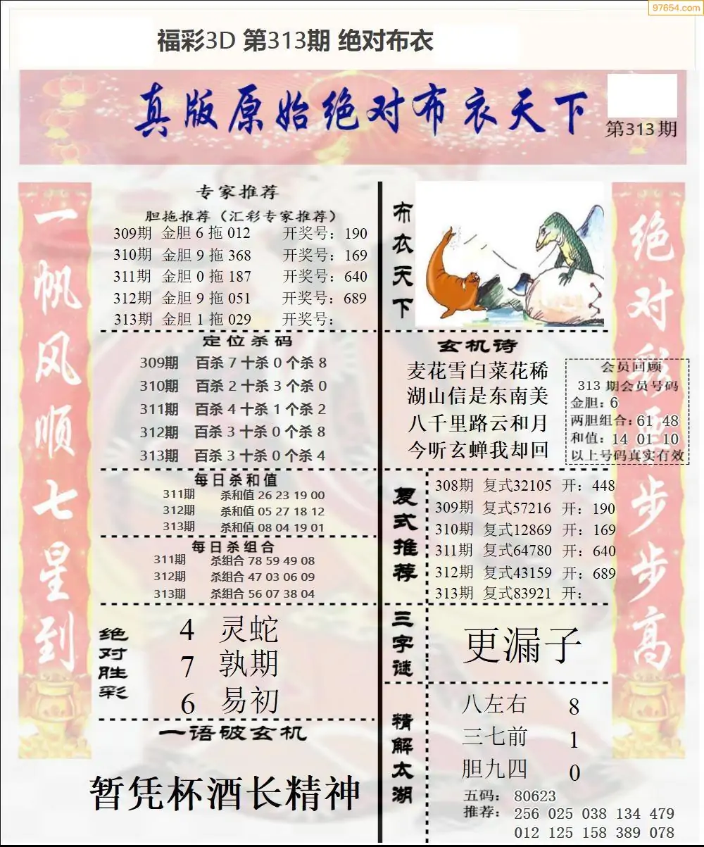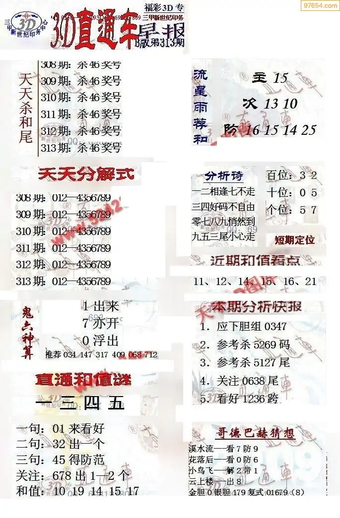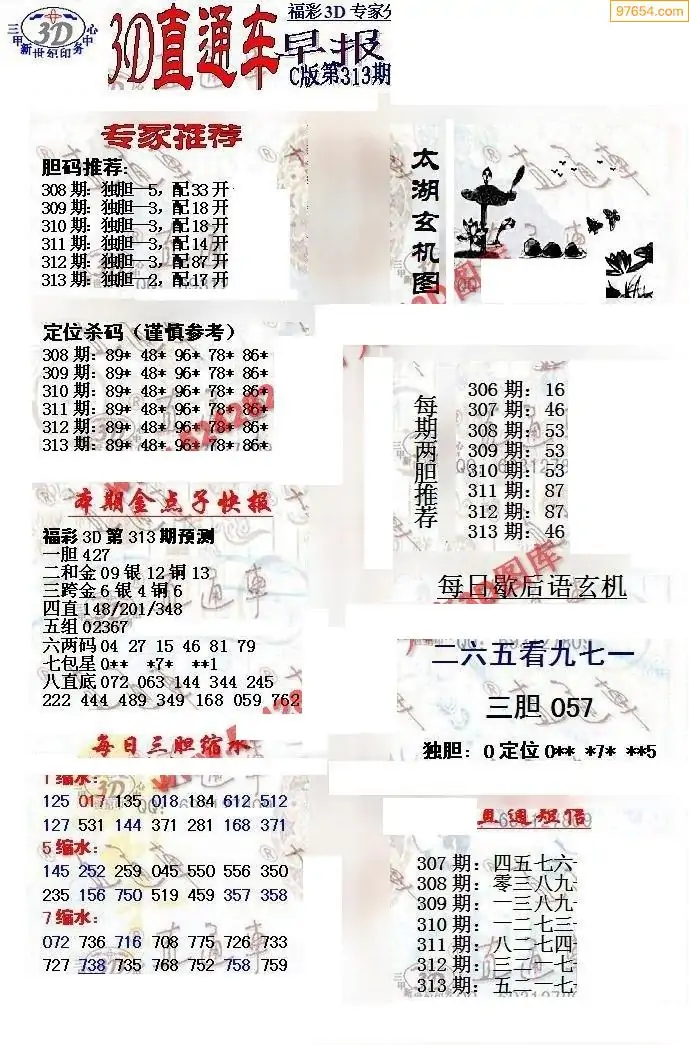 25年313期3d选号彩报图谜画谜