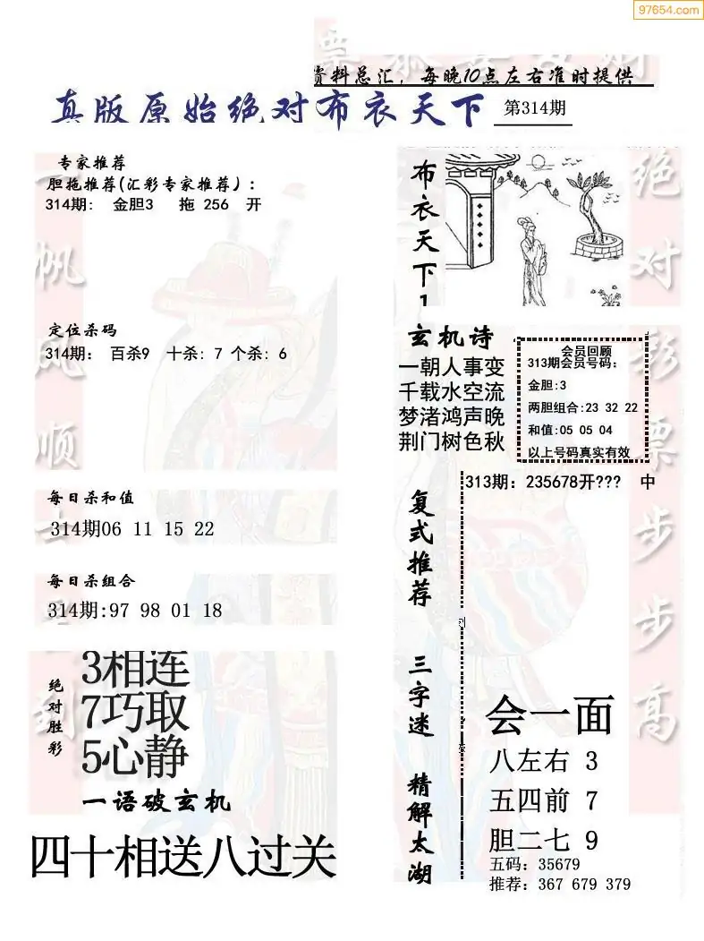 314期真版布衣神算专家推荐
