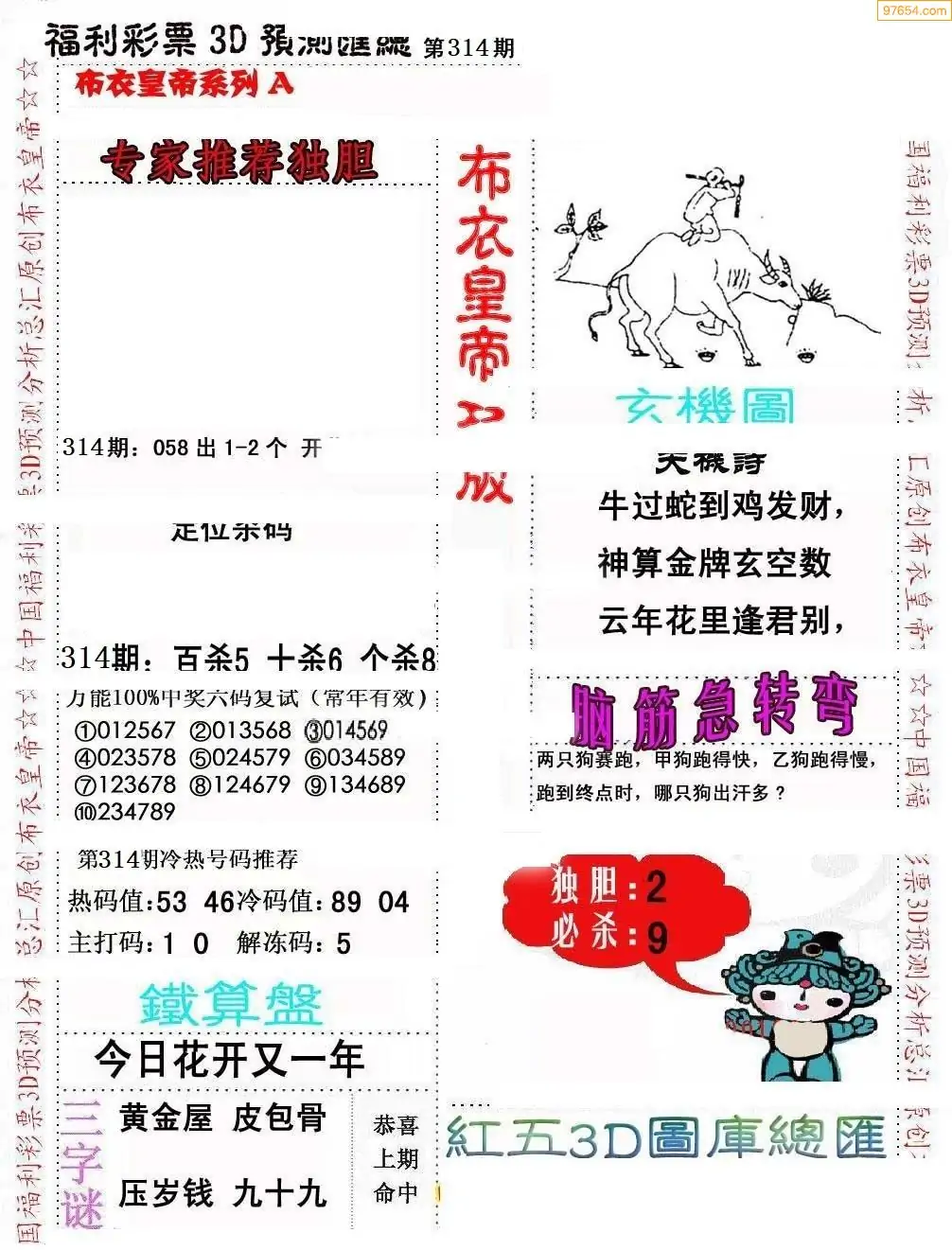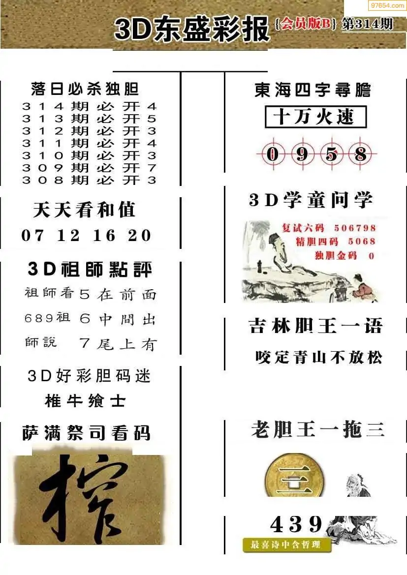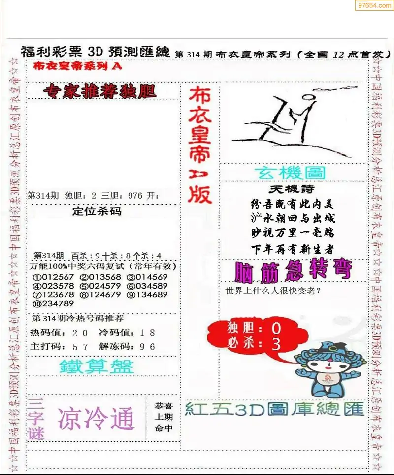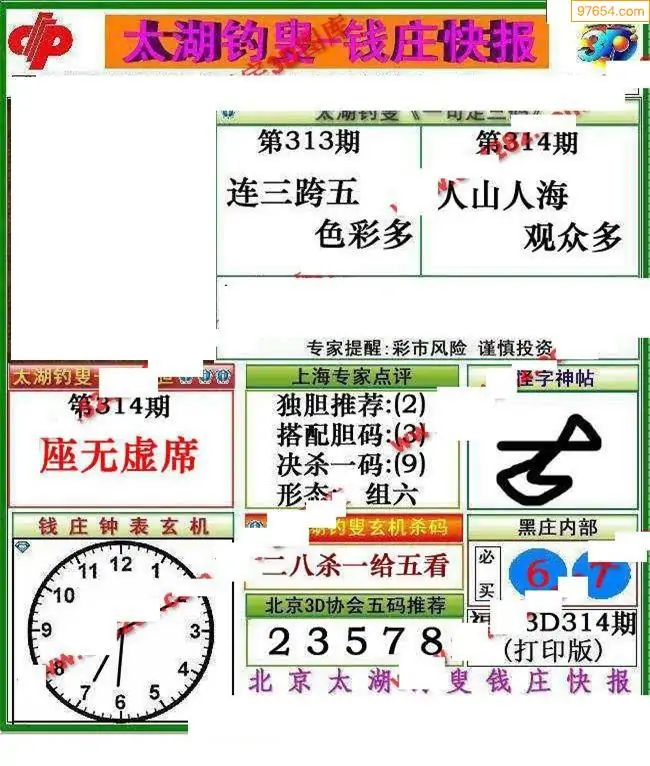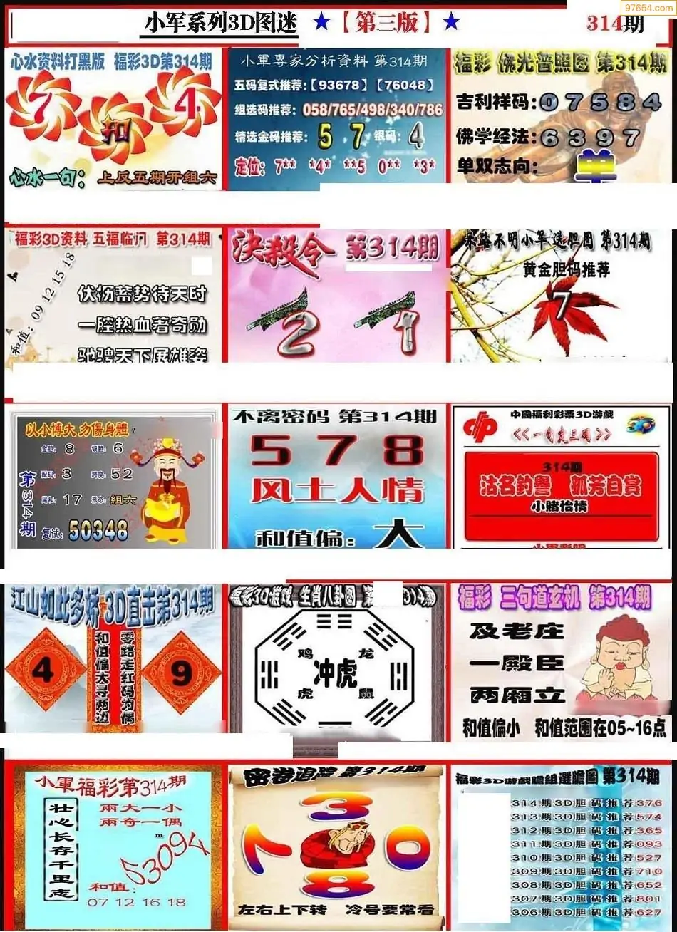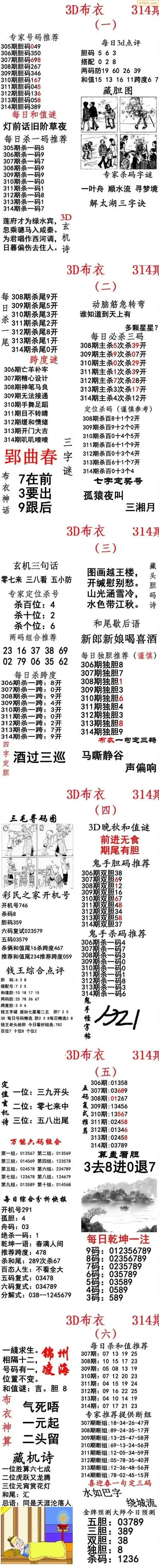(8)25年314期今日3d各类彩报汇总