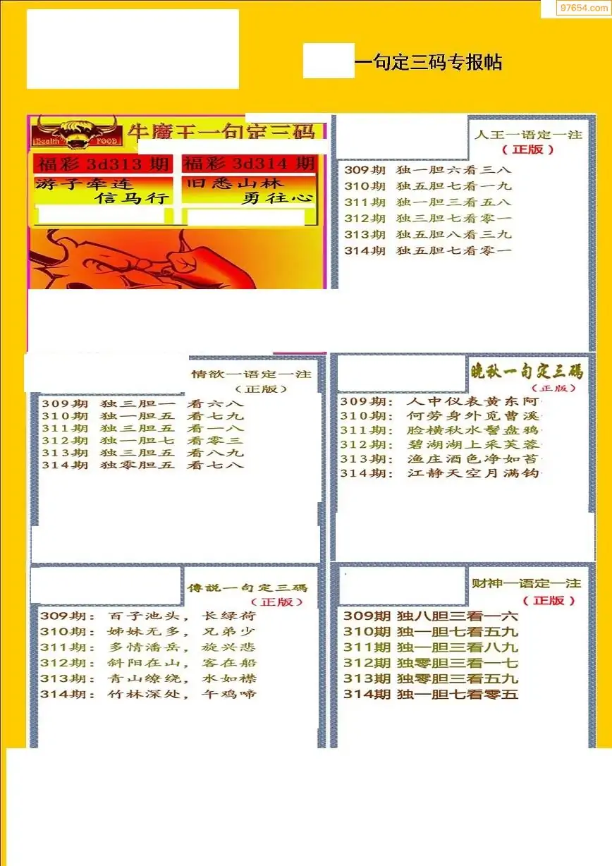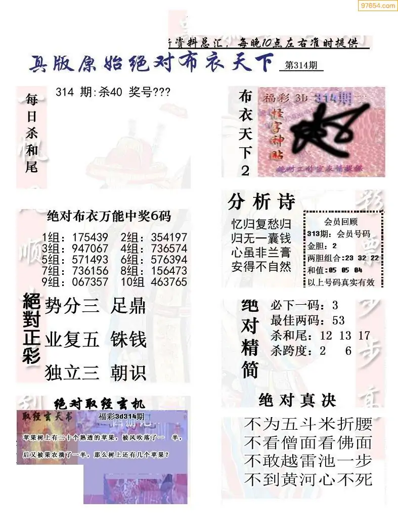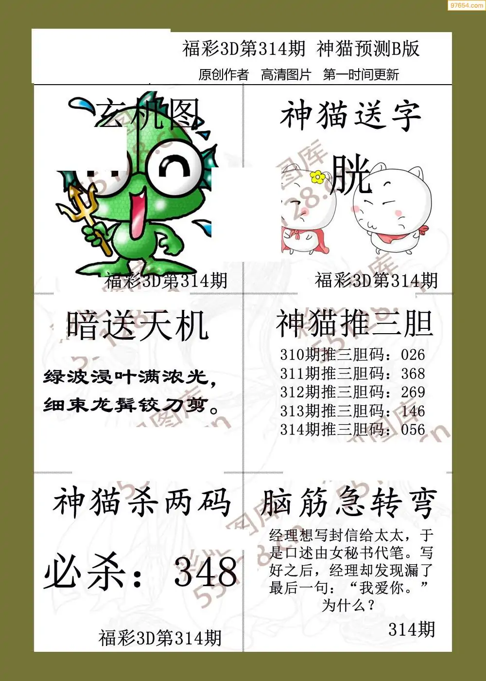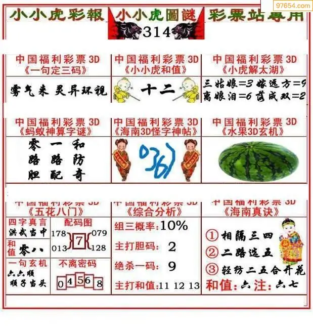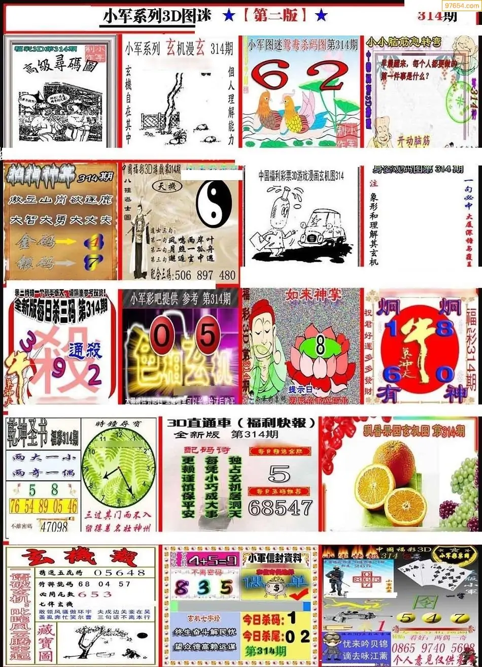 (8)25年314期今日3d各类彩报汇总