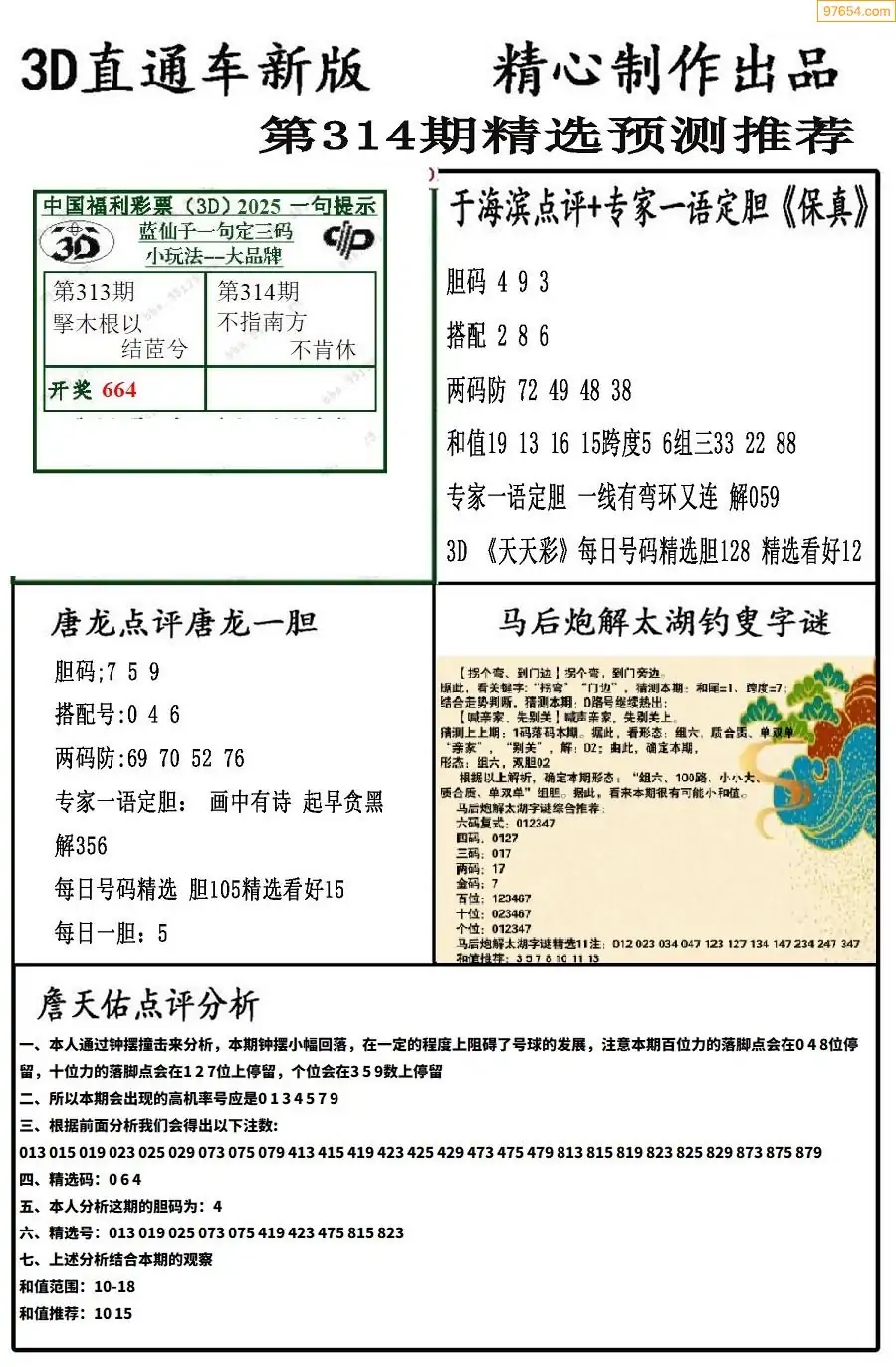 316期天齐3D图库原创综合图四版