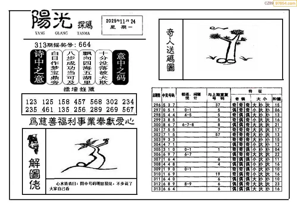 25314期福彩3D阳光探码图