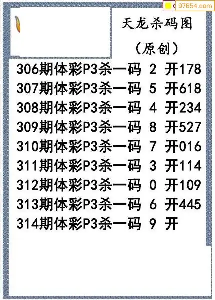 25年314期天龙体彩P3杀码图谜