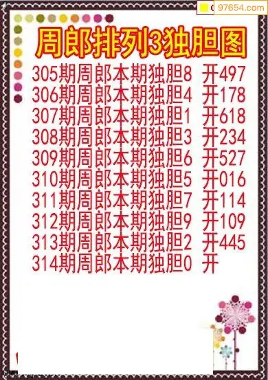 25314期排列3周郎本期独胆图