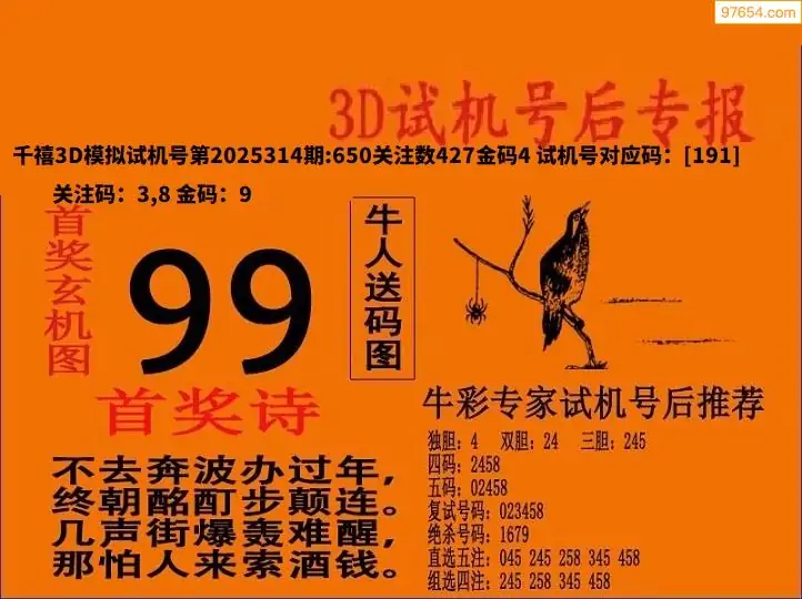3D316期陈哲友福彩试机号后一语定胆(原创)