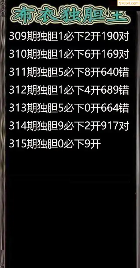 315期97654本站收集胆码出号预测