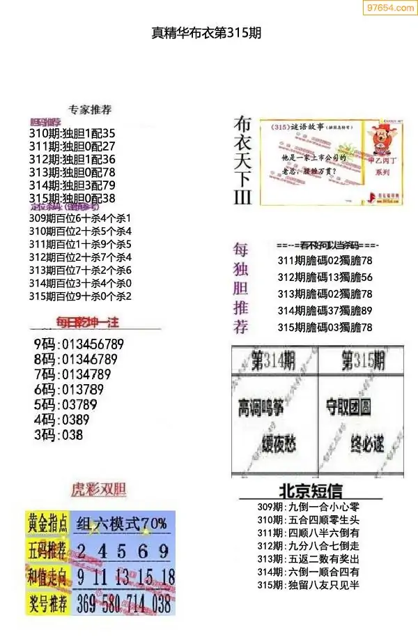 福彩315期3d真精华布衣+布衣早报(转载)