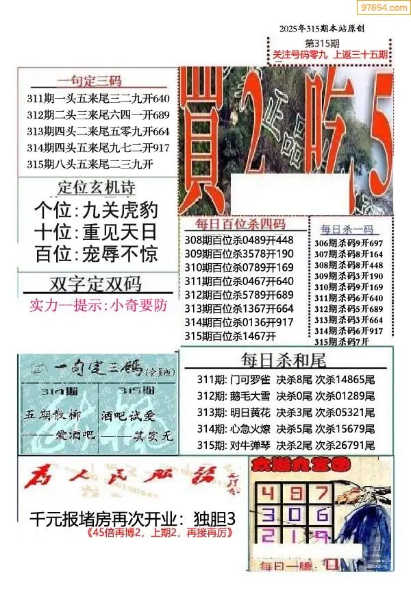福彩3d315期新禧布衣定位杀号