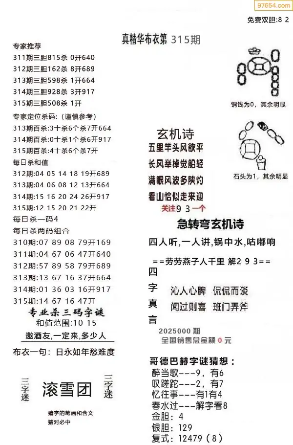 福彩25315期布衣3d字谜ab