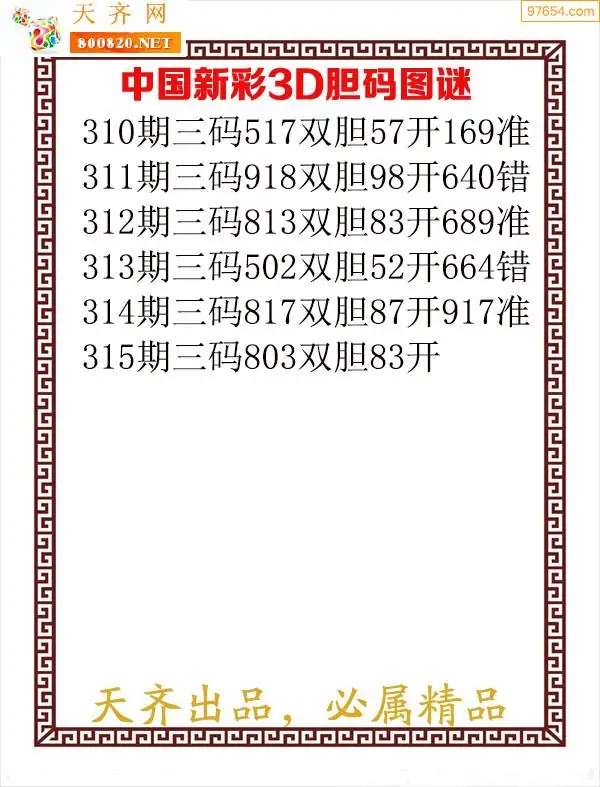 2025315期彩彩网3d原创图迷搜集(天中整理)