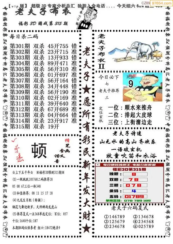 福彩315期3d真精华布衣+布衣早报(转载)