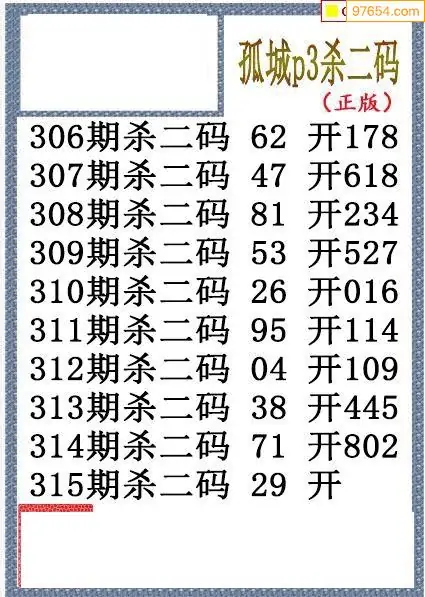 25年315期孤城本期杀码排3图谜
