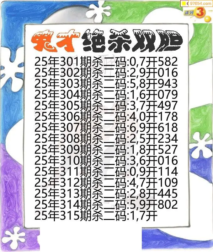 25年315期p3鬼才绝杀双胆图谜