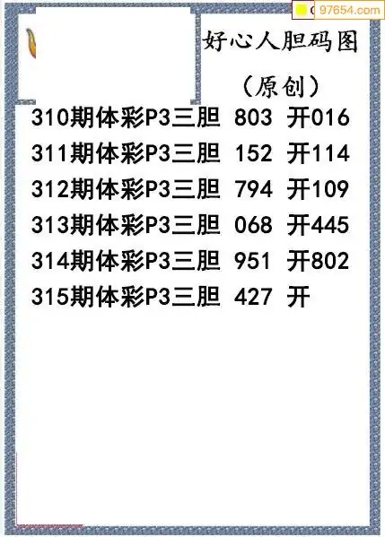 25315期好心人送胆排列三图谜