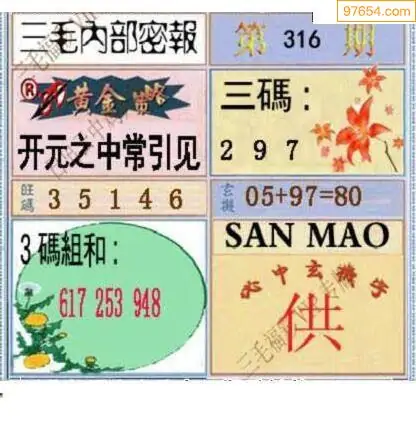 316期鑫马分析+杀手报3d图谜