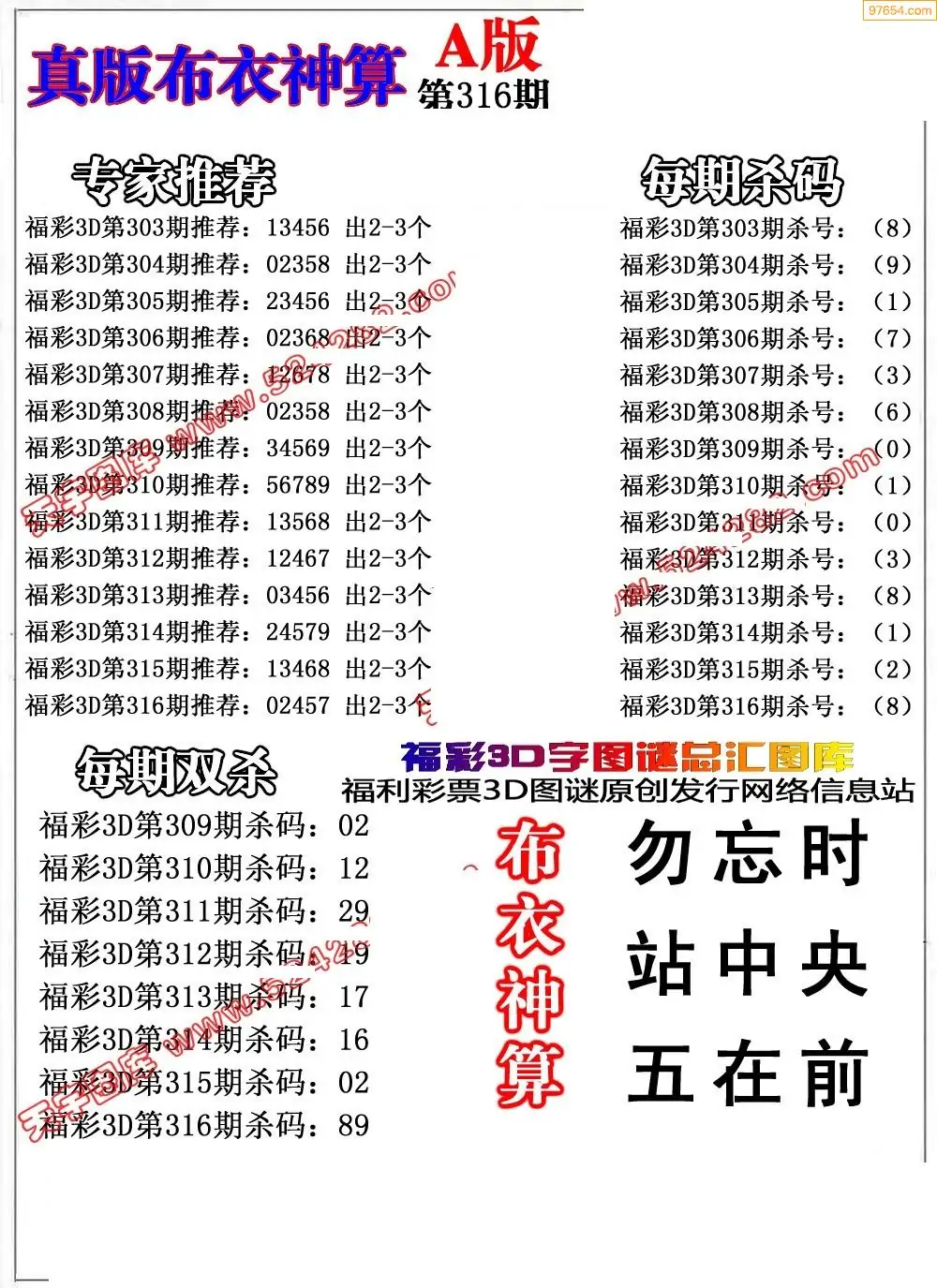 福彩316期3d真精华布衣+布衣早报(转载)