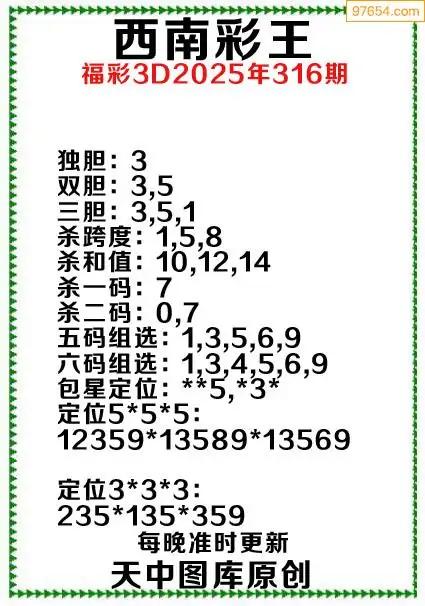 316期原创资料西南彩王当期预测