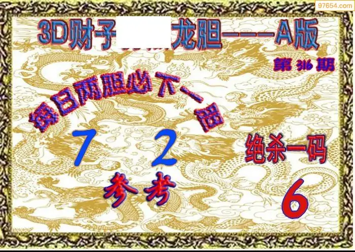 3D原创316期旺财出号推荐