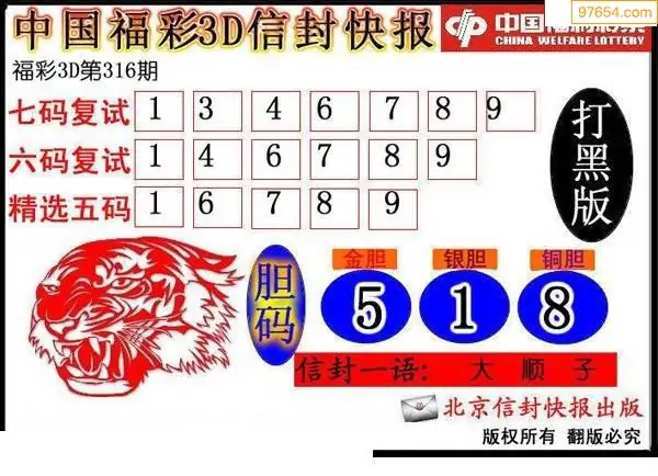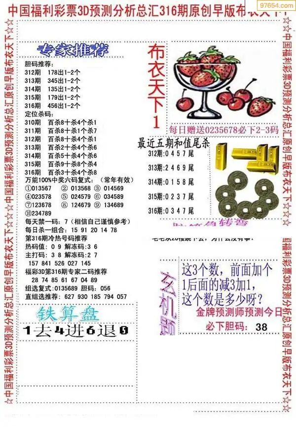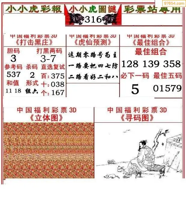 316期3D牛彩预测报+彩吧字谜报