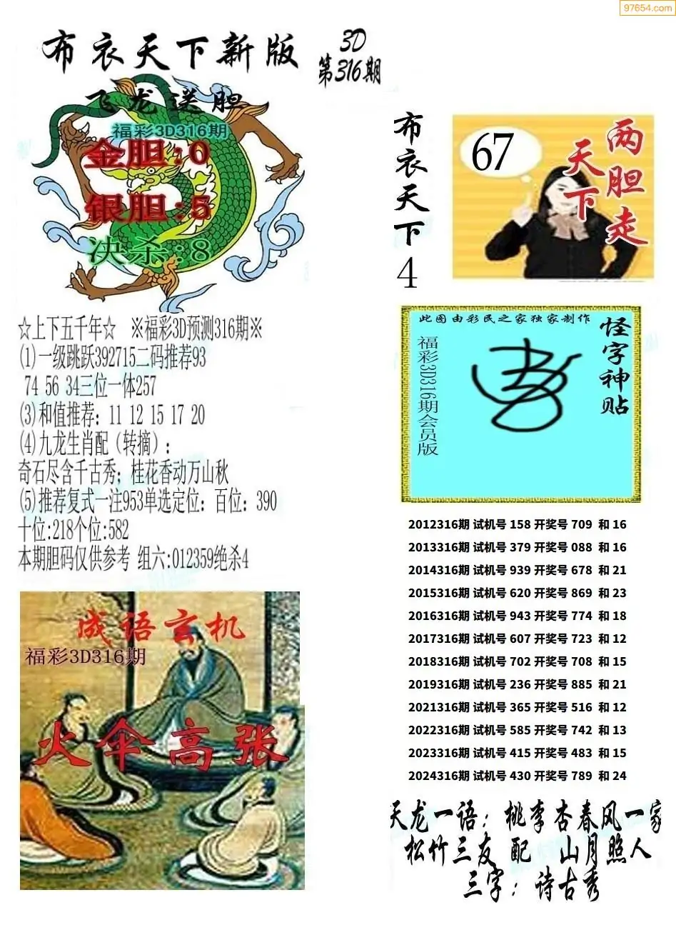 福彩316期3d真精华布衣+布衣早报(转载)