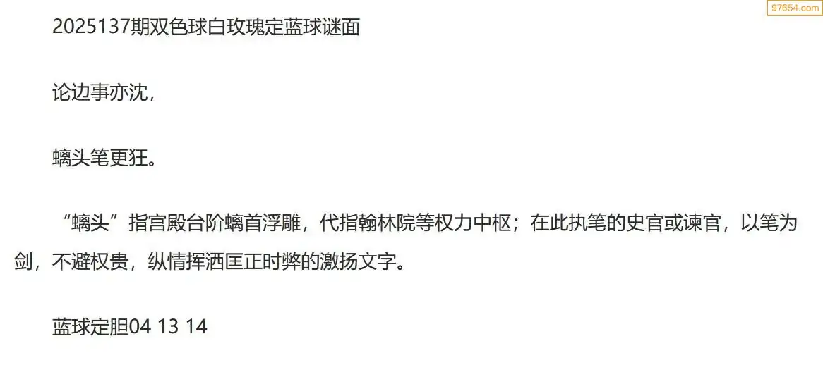 137期牛彩双色球字迷诗迷汇总(天中整理)