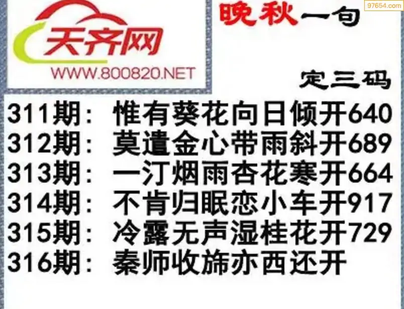 316期3D晚秋(乙种和值)谜:对称如形 D:同福靠前