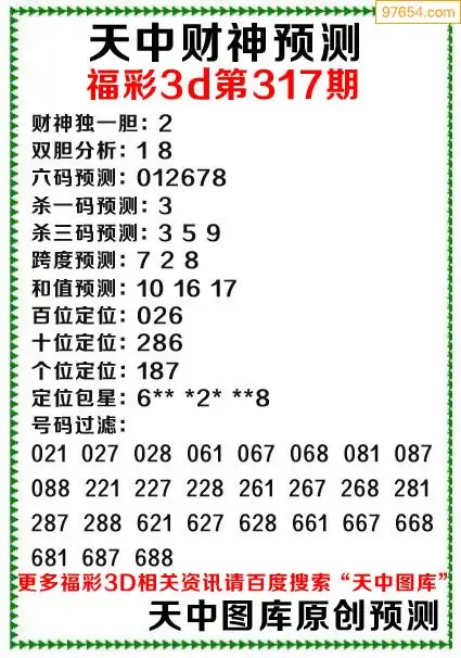 317期财神3d综合预测分析