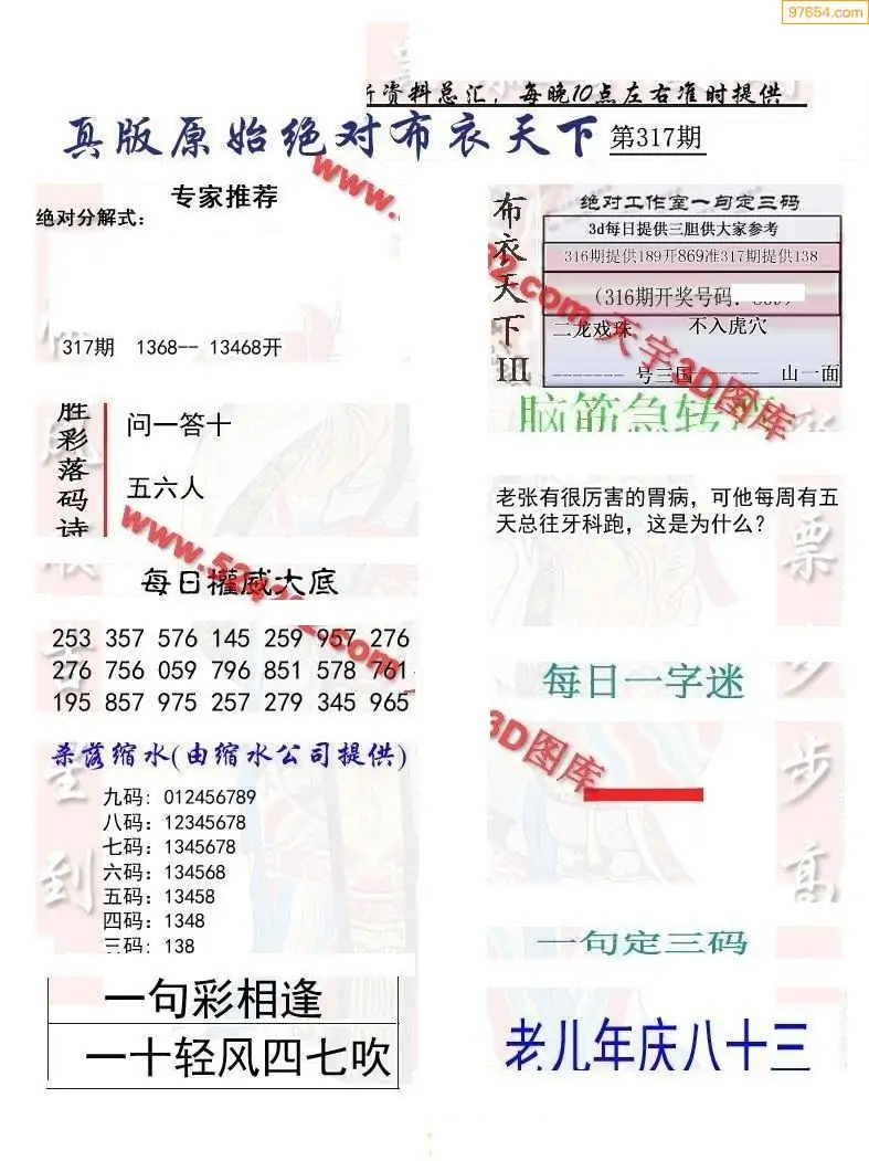 福彩317期3d真精华布衣+布衣早报(转载)