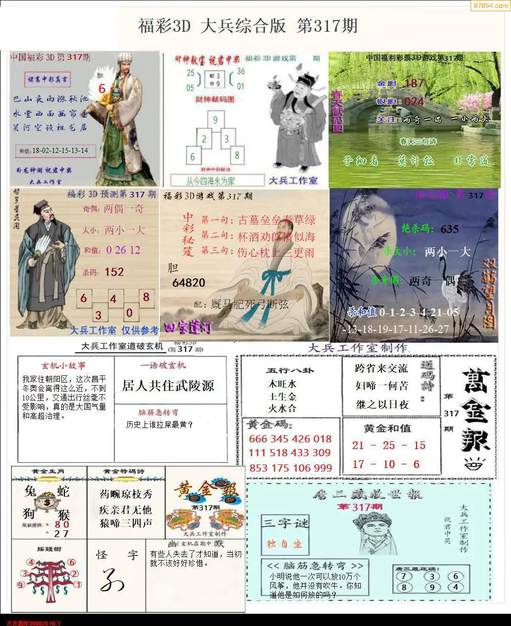 317期3D牛彩预测报+彩吧字谜报