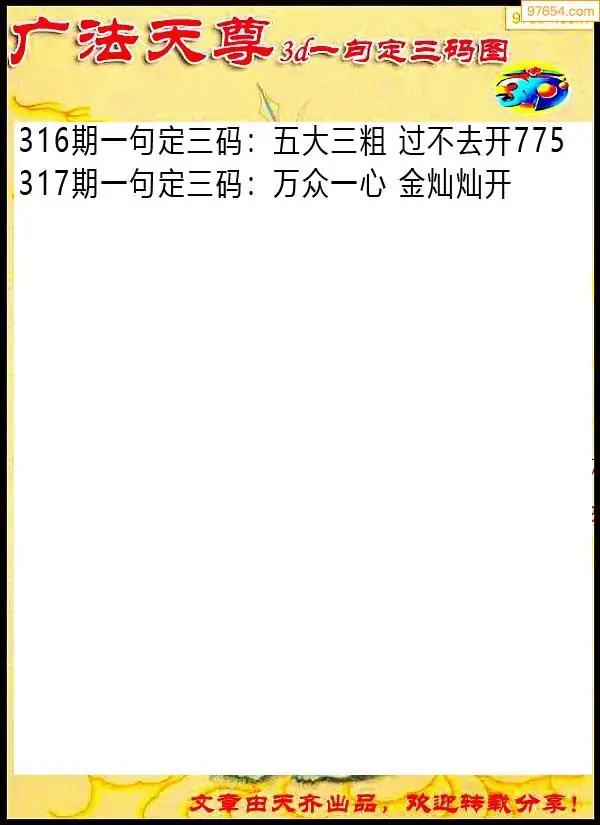 317期97654本站收集胆码出号预测