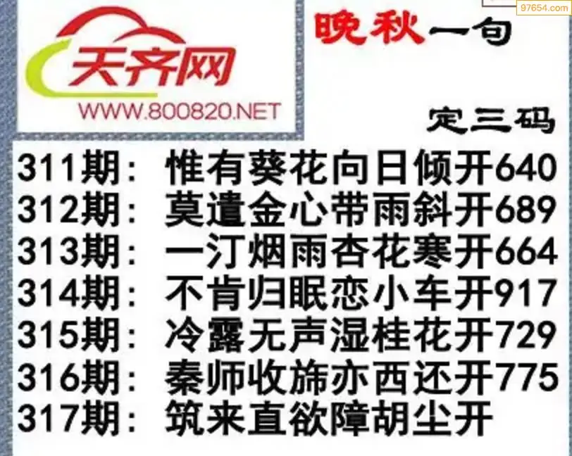 317期3D晚秋(和值)谜:期无尾返 D:包围小儿