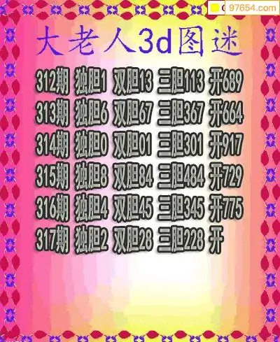 2025317期彩彩网3d原创图迷搜集(天中整理)