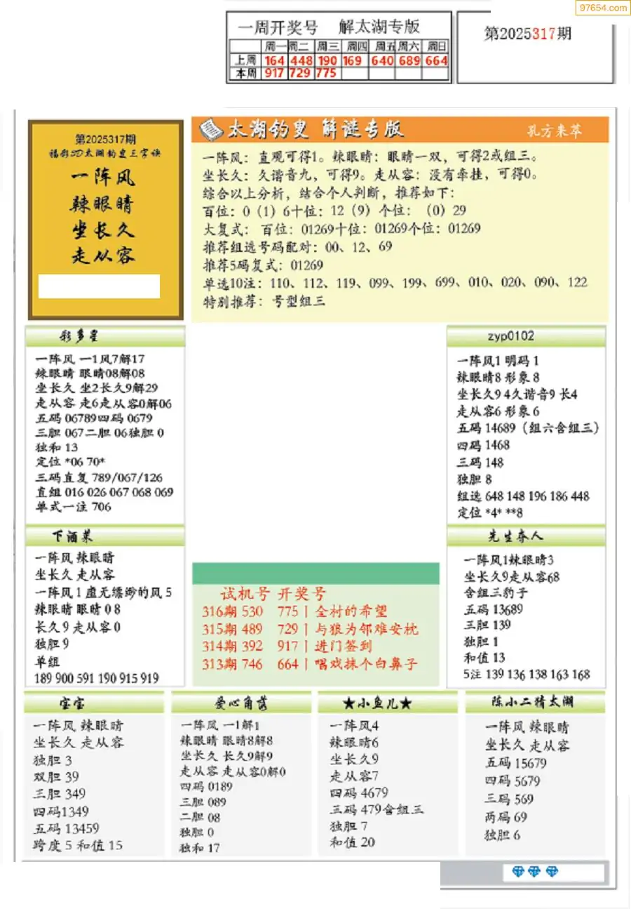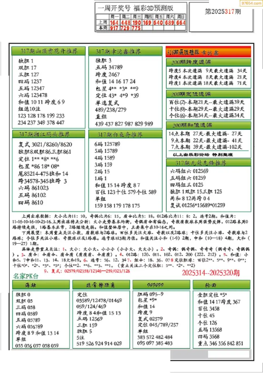 福彩3D317期天牛彩吧套图整合总汇