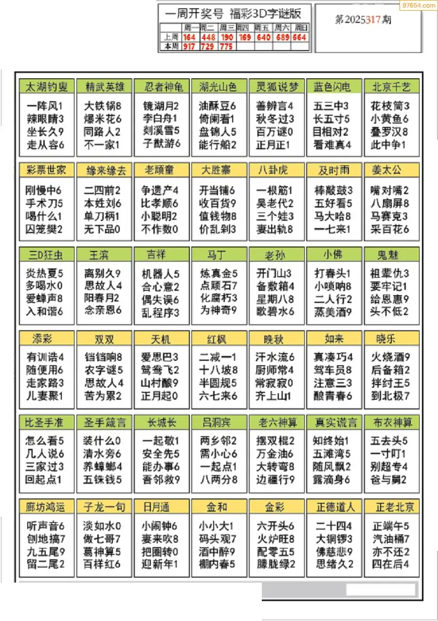 25年317期3d选号彩报图谜画谜